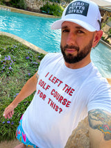 Looking for the perfect t-shirt to wear on your next outing with friends? Look no further! Our "I Left The Golf Course For This?" t-shirt is the perfect blend of humor and style.